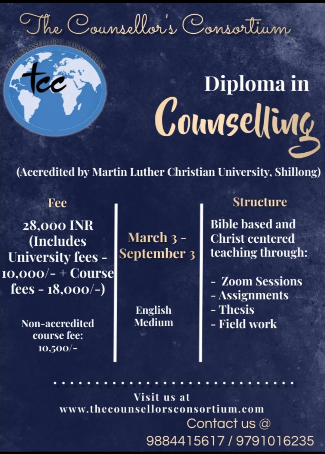 | Diploma in Counselling | March 3 - September 3, 2022 |