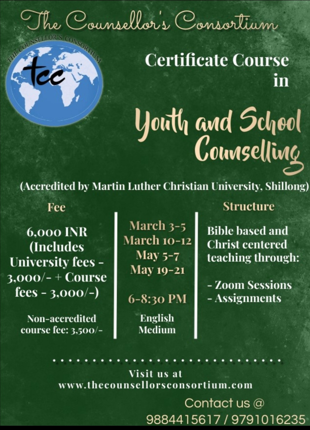 | Certificate Course in Youth and School Counselling: |